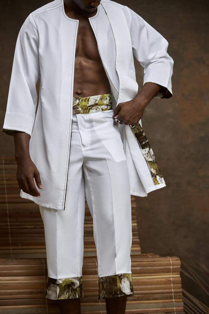 A modern twist kembe and buba worn by men in Yorubaland.