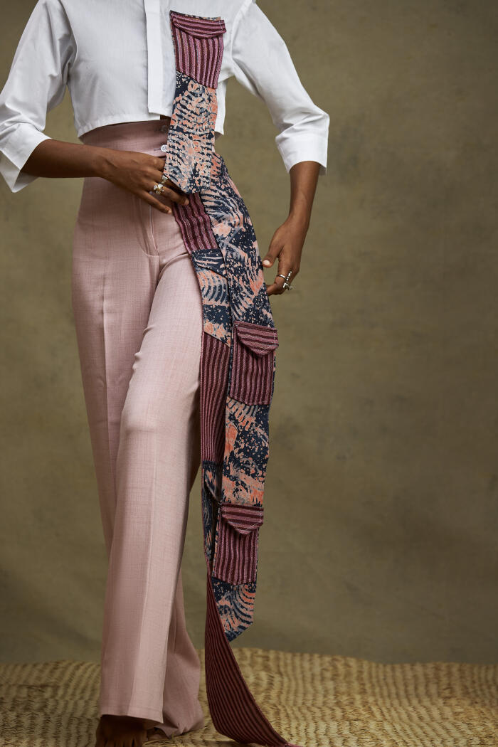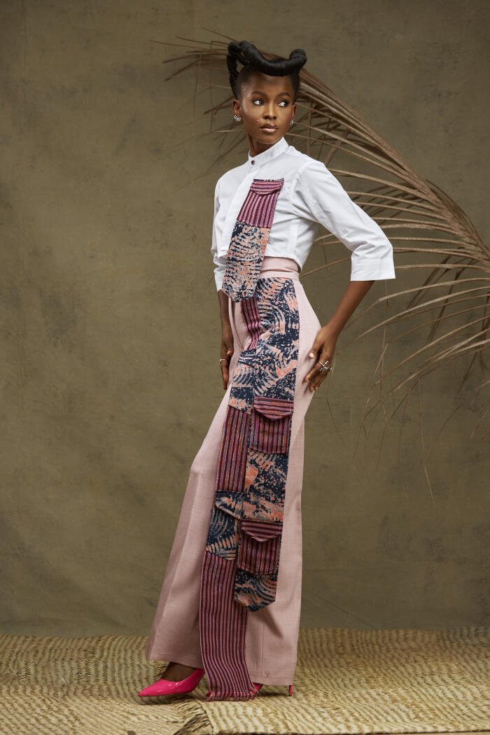 2 piece set (cropped shirt and wide leg pants) with our signature adire and aso oke flap. You can buy a matching set, or mix and match.