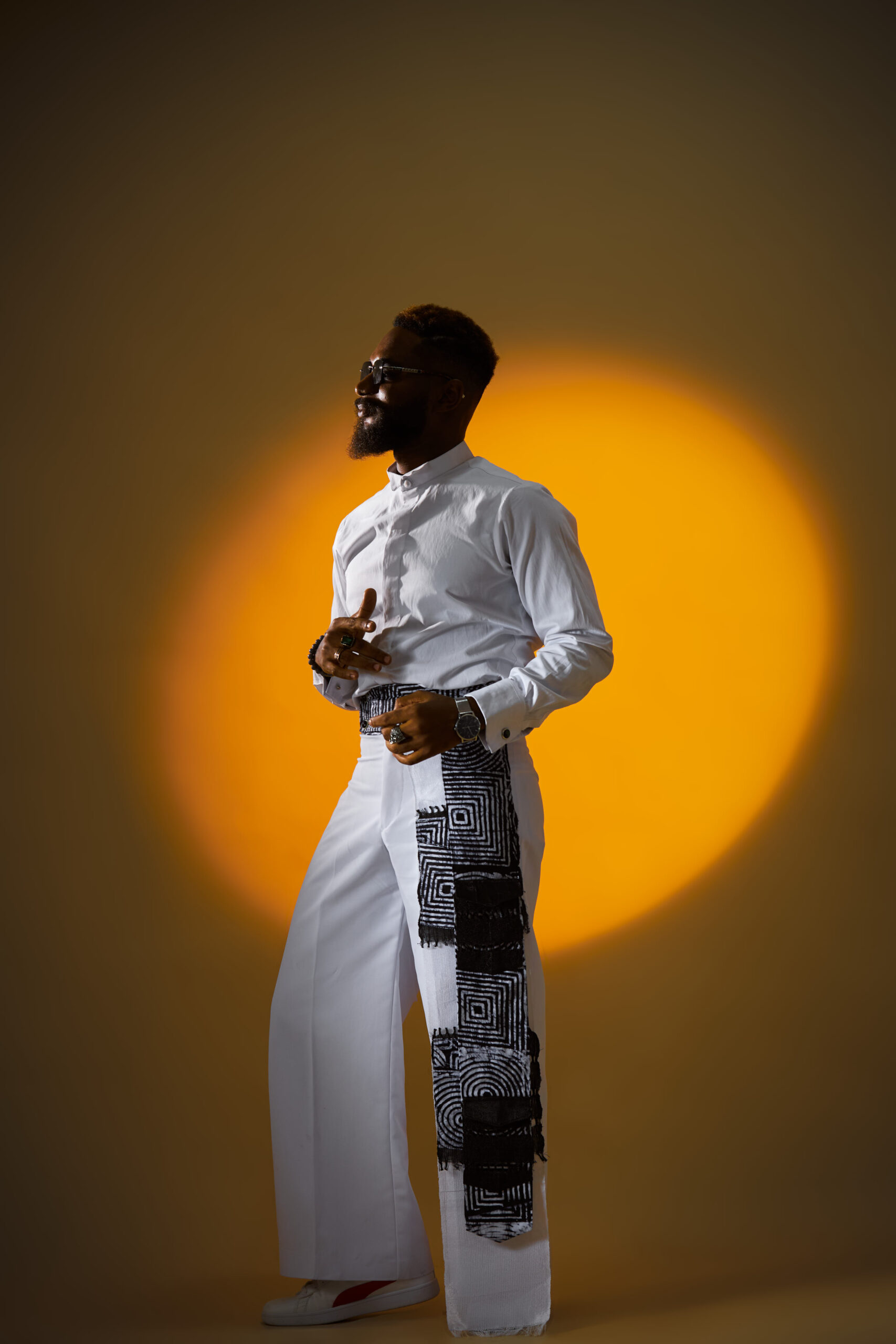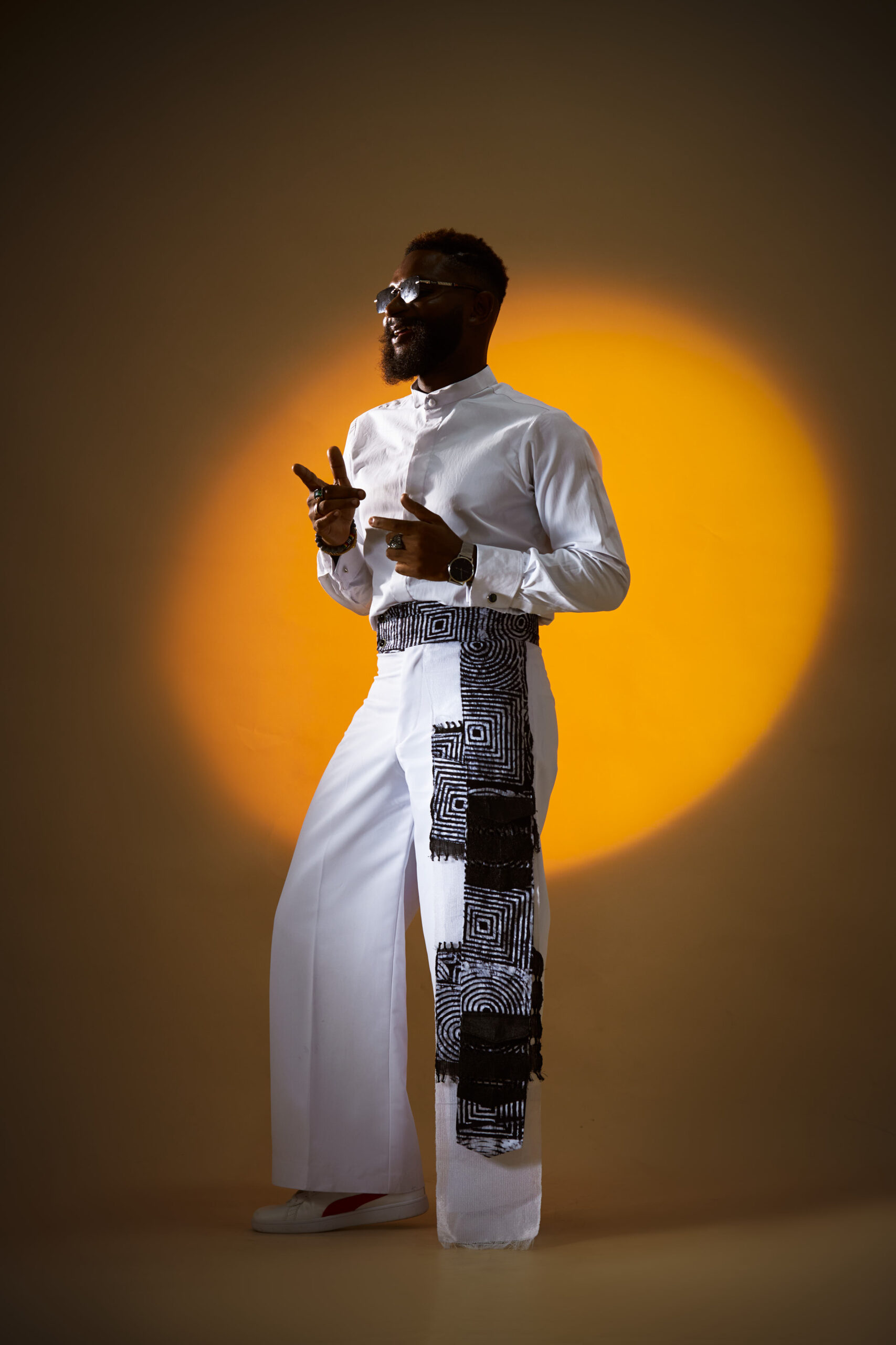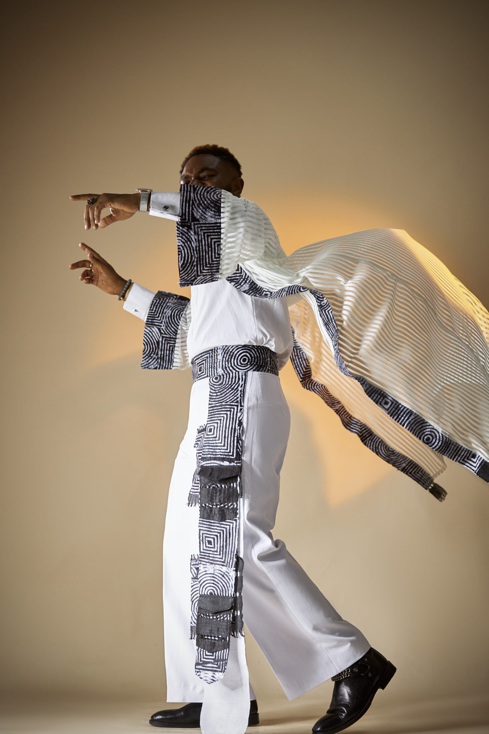 (Masquerade – A visible manifestation of the spirits of departed ancestors) Pants with side pockets detail, shirt and cap with fringe (different fabrics)